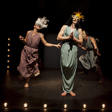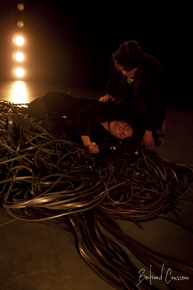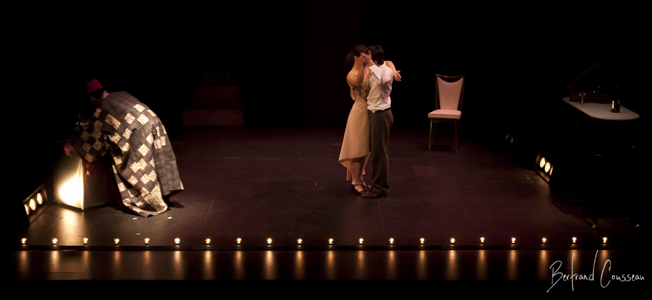 HH métamorpHosesEcriture - Mise en scène - Jeu : Gaëtan Emeraud Création costume et masque - Jeu - Direction d’acteur : Cyrille Fricaud Danse tango - Jeu - Chorégraphie : Stéphanie Lepeu Scénographie : Morgan Guicquero Création bande son : Jérôme Teurtrie Création lumière : Alan Floch Conseils mise en scène "regard extérieur" : Silvano Voltolina HH métamorpHoses est l’acte fondateur du Lycanthrope Théâtre. Au cours de l’année 2011 nous avons ouvert notre laboratoire, la recherche collective s’est appuyée : sur des œuvres littéraires, des essais, des masques, le tango danza, des films, des propositions plastiques... Ces ferments puissants ont mijoté dans notre alambic. Après une série de résidences, Gaëtan Emeraud a proposé un montage de scène et un texte pour distiller cette matière dense. De fil en aiguille notre recherche nous a poussés à mettre en scène un grand tourbillon, un cabaret de l’inconscient entre tango et étrangeté. HH métamorpHoses Si la fantaisie vous prend Harry, le héros, erre la nuit dans une ville germanique à la fin des années 20. Déprimé, il arpente les rues à la recherche d’une taverne encore ouverte quand il est irrésistiblement attiré par l’enseigne du "Théâtre H". Cabane de foire, cabaret magique, passerelle vers l’inconscient ? Dans son théâtre, Hermann tire les ficelles, il convoque Hermine et orchestre les métamorphoses. Harry découvre les multiples facettes de sa personnalité, comme autant de masques. Génie féminin, Hermine, l’entraîne par la danse et Harry vacille au son du tango. Il est écrit que cette soirée ne devra ressembler à aucune autre... Dates à venir Dossier de présentation Dossier de presse |